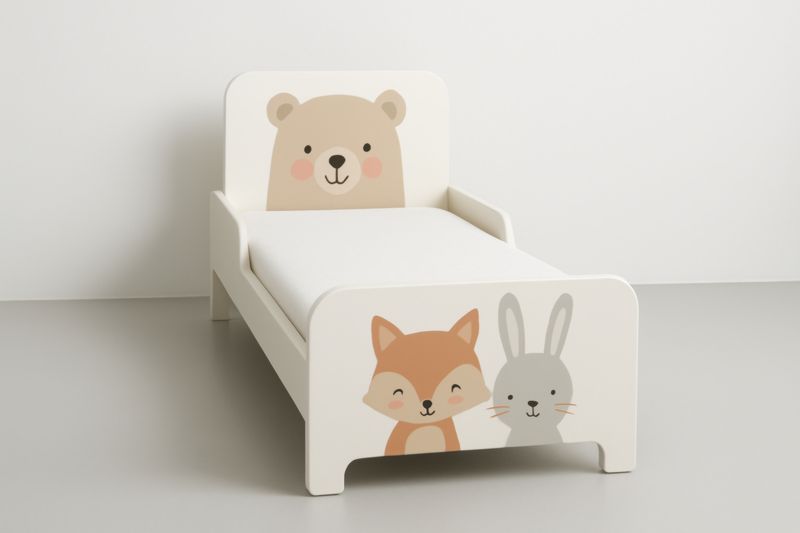 Lit enfant MDF avec motifs animaux Blanc 140x70cm