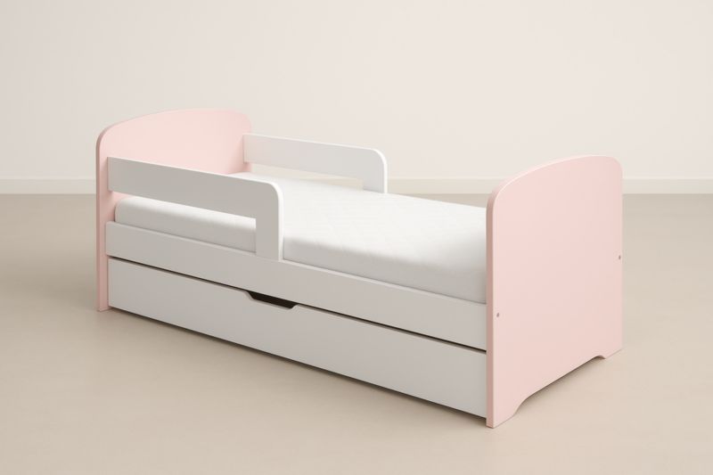 Lit enfant MDF blanc/rose avec tiroir 140x70 cm